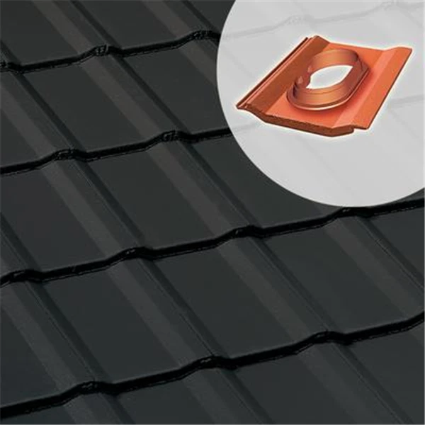 Tuile à douille DUROVENT Perspective universelle, en béton, destinée à recevoir un conduit de ventilation de diamètre allant de 110 à 150 mm.