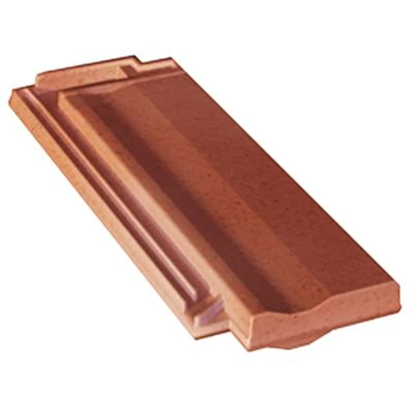 Demi-tuile, en terre cuite, permettant la jonction entre les tuiles normales et les tuiles de rives droites.