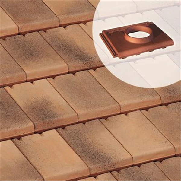 Double tuile à douille, en terre cuite, diamètre int. du tuyau d’évacutaion : 150 mm.