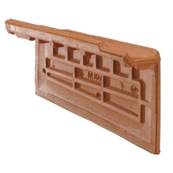 Rive individuelle verticale droite à emboîtement à grand rabat, en terre cuite, permettant la finition des rampants de pignon.