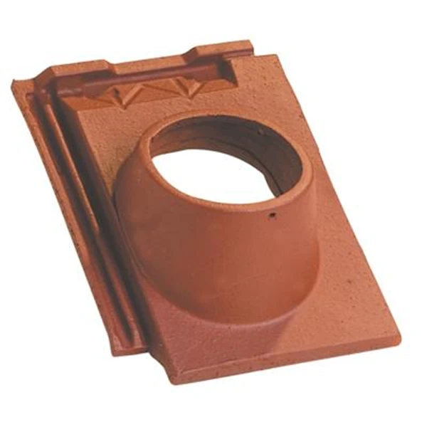 Tuile à douille en terre cuite diamètre de 120 mm, permettant le passage des évacuations.