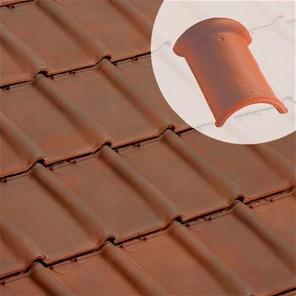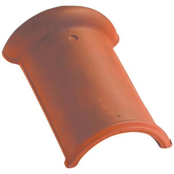 Tuile faîtière 1/2 ronde à emboîtement en terre cuite.