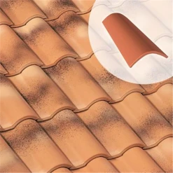 Tuile faiteau courbe, en terre cuite, permettant la réalisation de faîtage et d’arêtier.
