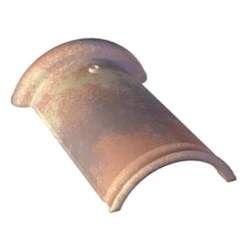 Tuile demi-ronde, en terre cuite, destinée à la réalisation des faîtages et arêtier.