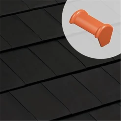 Faîtière d’about 1/2 ronde début, en terre cuite, permettant la finition de la ligne de faitage.