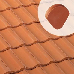 Fronton de rive à rabat en terre cuite pour faîtière demi-ronde.