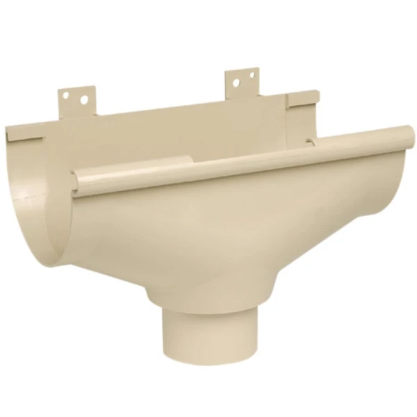 - Raccord central entre les profilés de gouttière demi-ronde LG33 et un tube de descente de 100 mm.
