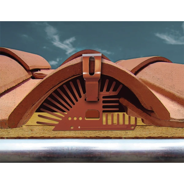 - Clip : Acier laqué largeur : 20 mm – épaisseur : 1 mm (1 face rouge tuile RAL 8012, 1 face teinte vieilli)