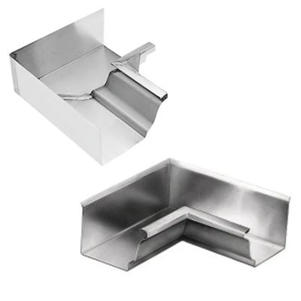 Équerre moulurée intérieure en zinc, sans pince, destinée au raccord d’angle pour gouttières moulurées.