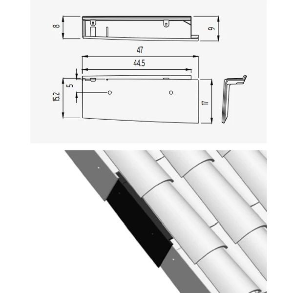 - À poser sous la première tuile, du côté gauche.