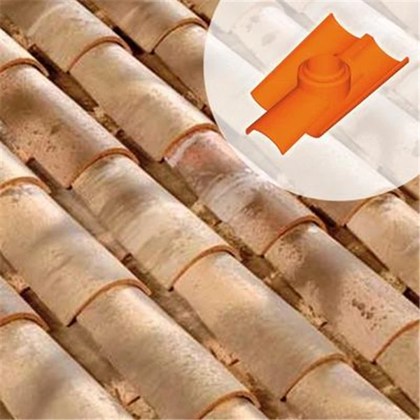 Tuile à douille (3 tuiles), en terre cuite, diamètre int. du tuyau d’évacutaion : 150 mm.