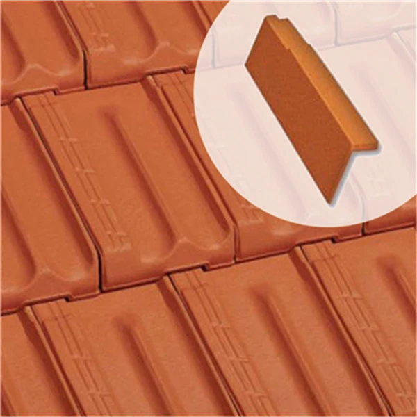 Tuile de rive individuelle gauche à recouvrement, en terre cuite. Permet la finition des rampants de pignon. Accessoire de la tuile à côte universelle, à double emboîtement et double recouvrement.