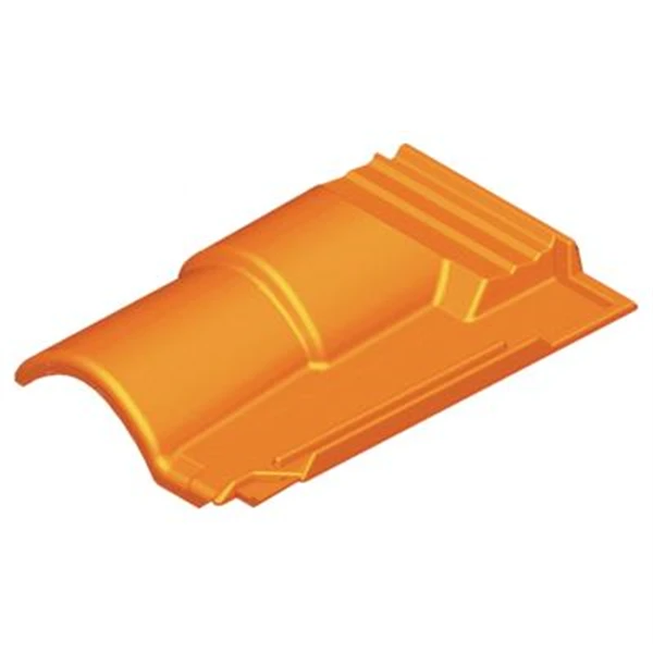 Tuile sous-faîtière, pureau entier, en terre cuite. Permet une jonction parfaite entre le faîtage et les tuiles normales.
