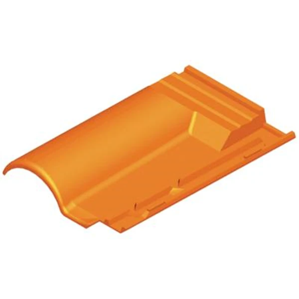 Tuile sous-faîtière, pureau entier, en terre cuite. Permet une jonction parfaite entre le faîtage et les tuiles normales.