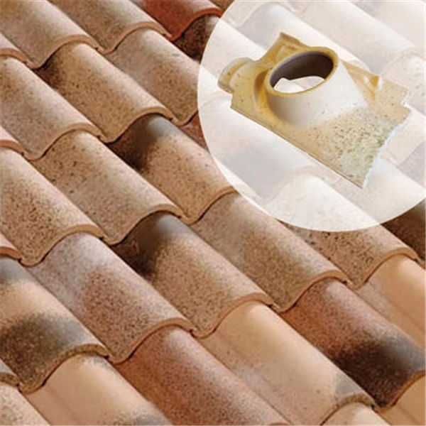Tuile à douille, en terre cuite, diamètre int. du tuyau d’évacutaion : 150 mm.