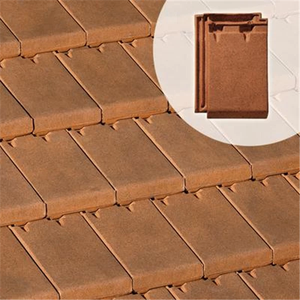 Tuile de terre cuite à emboîtement à pureau plat, double emboîtement, double recouvrement.